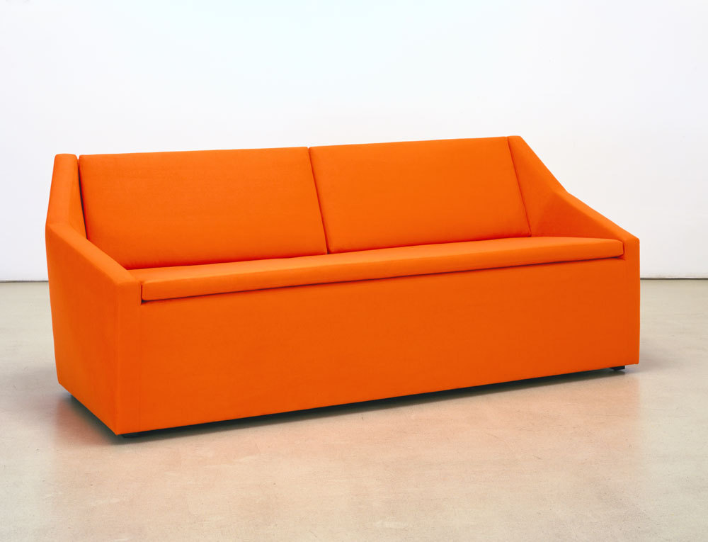 Sofa upholstered with poly-urethane foam over birch plywood frame. Solid wood legs in standard black finish.