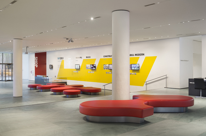 Group seating system made of birch plywoodupholstered in poly-urethane foam withsteel laminated base.