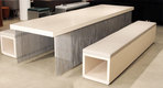 Bench in solid wood and veneer.Seat upholstered with poly-urethanefoam.